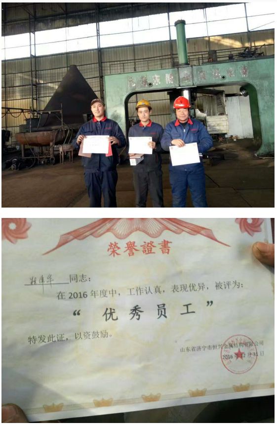 祝賀封頭車間楊兆君、韓憲良、程偉華三位同志榮獲恒興公司“優(yōu) 秀員工”獎(jiǎng)。2016年已經(jīng)過(guò)去,在2017年中,我們要充分認(rèn)識(shí)到自己的不足,更加努力工作,全心全意為客戶服務(wù)!祝大家身體健康、萬(wàn)事如意,元旦快樂(lè)!